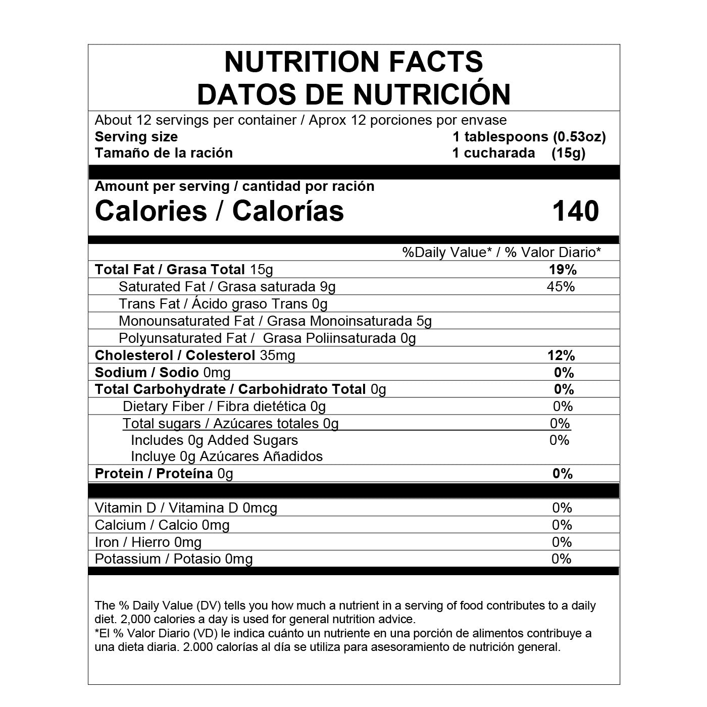 100% clarified cow’s butter (unsalted) and natural oregano.